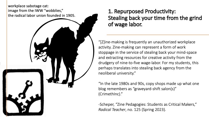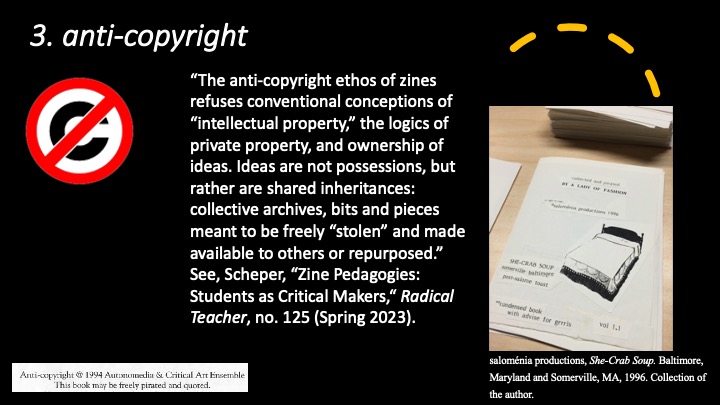 Jeanne Scheper, “Zine Pedagogies: Students as Critical Makers,“ Radical Teacher, no. 125 (Spring 2023): 20-32.